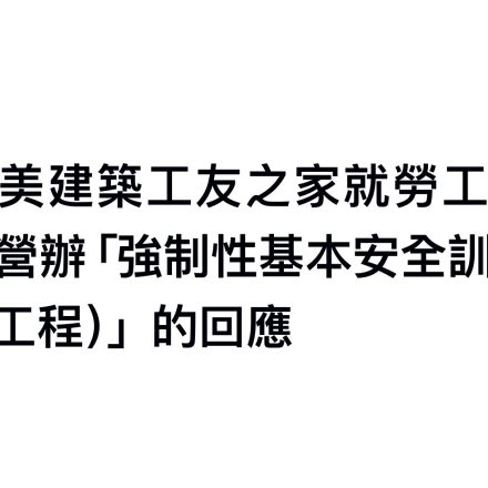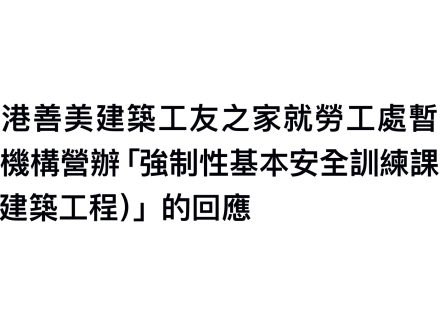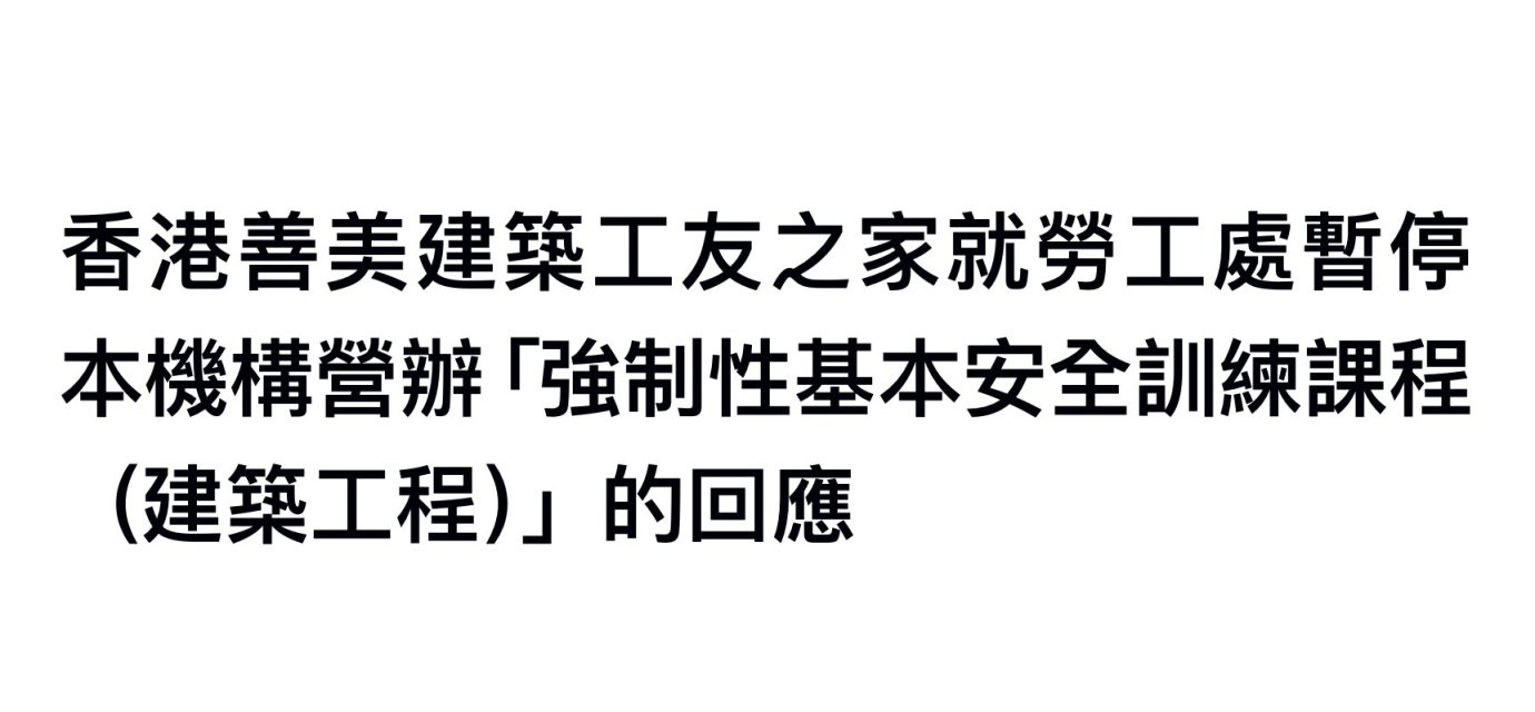 香港善美建築工友之家就勞工處暫停本機構營辦「強制性基本安全訓練課程(建築工程)」的回應