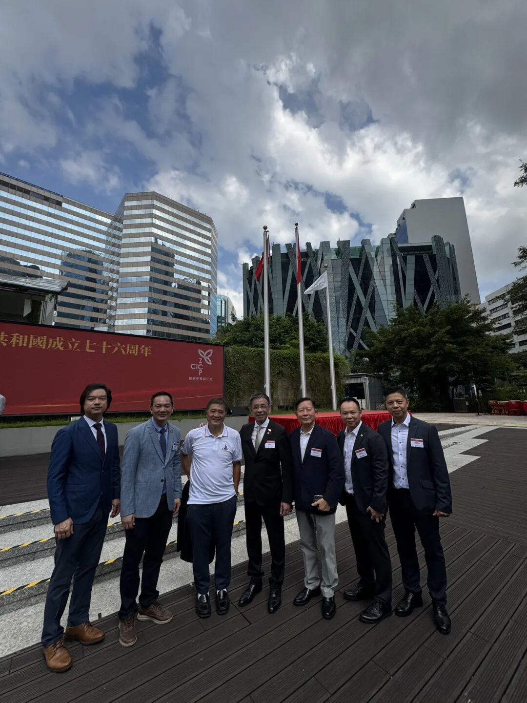 10月1日上午,建造業議會於建造業零碳天地隆重舉行升旗儀式,熱烈慶祝中華人民共和國成立76周年。香港善美建築工友之家工友代表出席,與房屋局副局長戴尚誠先生、發展局工務部副秘書長林雅雯女士、建造業議會主席何安誠教授工程師、香港建造商會會長廖聖鵬工程師、零碳天地管理委員會主席符展成先生等主禮嘉賓,以及立法會議員、中央人民政府駐香港特別行政區聯絡辦公室教育科技部代表、百位建造業界同仁共同見證莊嚴時刻。