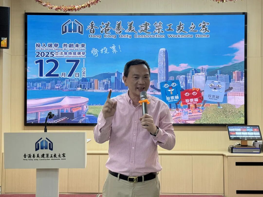 善美之家主席魏小麟在致辭中表示,香港回歸祖國28年來,在國家堅強支持下,通過完善選舉制度實現了「愛國愛港者治港」的根本原則,讓基層聲音能夠更直接、更暢通地傳達至治理核心。建築工友們是香港城市建設的功臣,常年辛勞奔波,不僅為城市築起高樓,更在各個社區紮根生活,社區的配套設施、民生服務、安全環境等,都與大家的日常生活息息相關,而地方選區的立法會議員,正是連接政府與基層市民的重要橋樑。