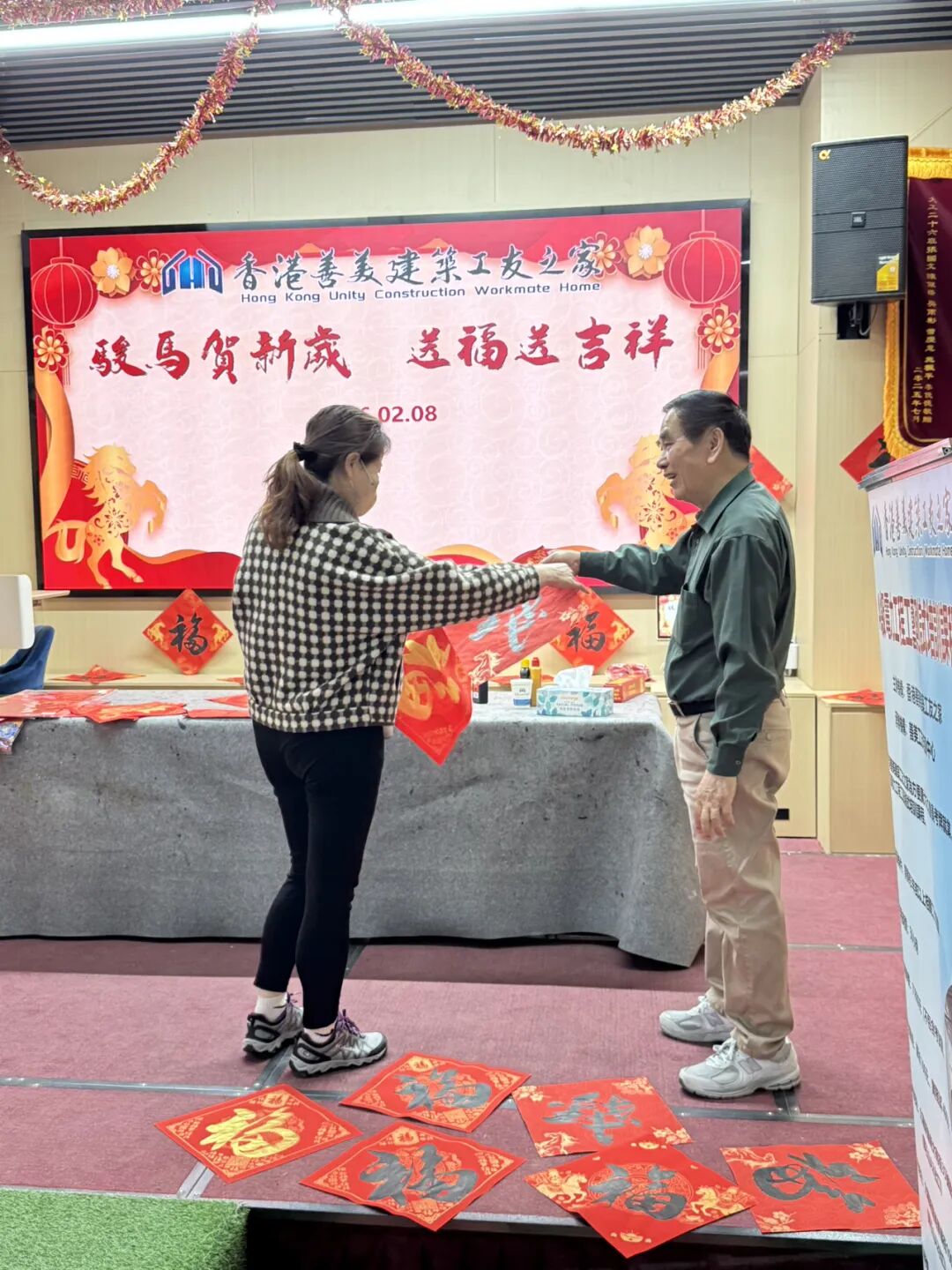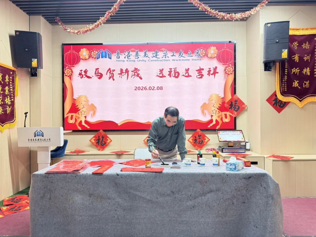 2026年2月8日,值丙午馬年新春佳節臨近之際,香港善美建築工友之家今日隆重舉辦「駿馬賀新歲 送福送吉祥」新春主題活動,特邀機構顧問陳煒先生親臨現場揮毫潑墨,為建築工友送上手寫揮春與新春祝福,以筆墨傳情,用暖意凝心,讓堅守香港建設一線的工友們在墨香與年味中喜迎新歲。